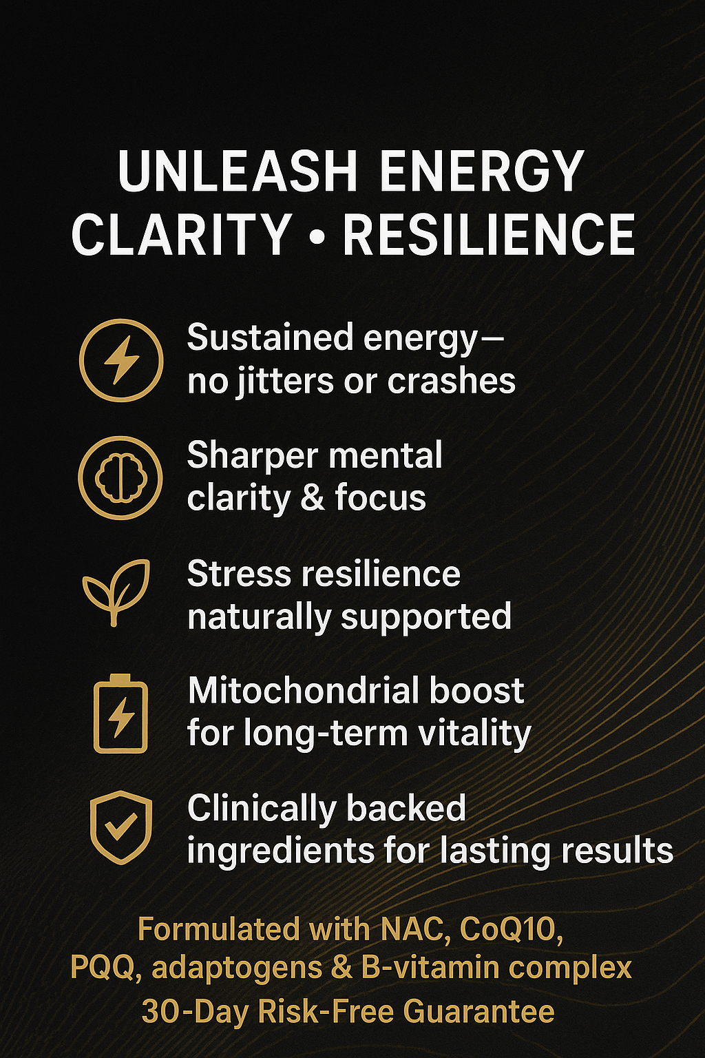Reference: "Pyrroloquinoline Quinone (PQQ) and its Role in Mitochondrial Biogenesis and Neuroprotection" – International Journal of Molecular Sciences. - NADH (Nicotinamide Adenine Dinucleotide) – NADH is essential for mitochondrial energy production. Clinical studies show that NADH supplementation can help reduce mental fatigue and improve cognitive performance by boosting cellular metabolism and supporting brain function. Reference: "NADH supplementation enhances physical performance and cognitive function" – Clinical Neuropharmacology.