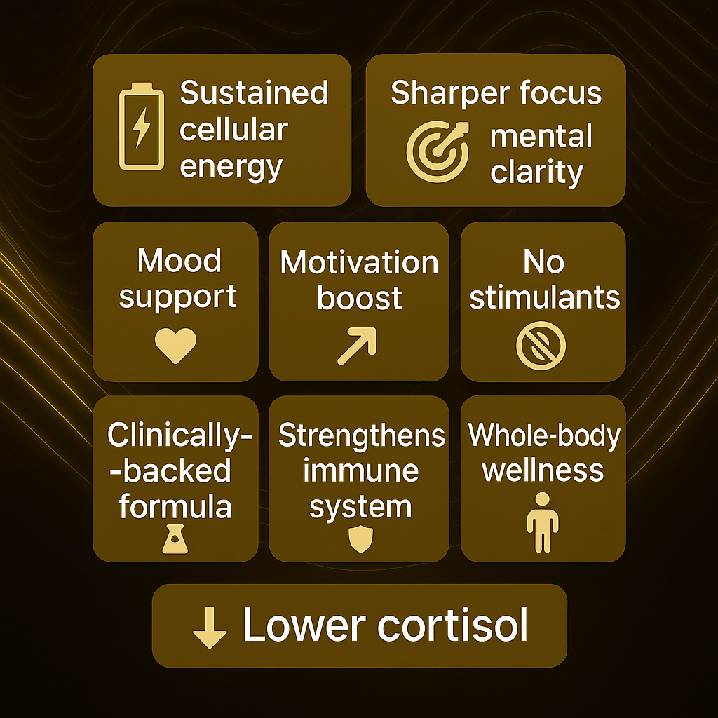 Unlock your full potential with a holistic, all-natural, proprietary formula that enhances energy, cognitive function, and resilience to stress—without the jitters of caffeine.